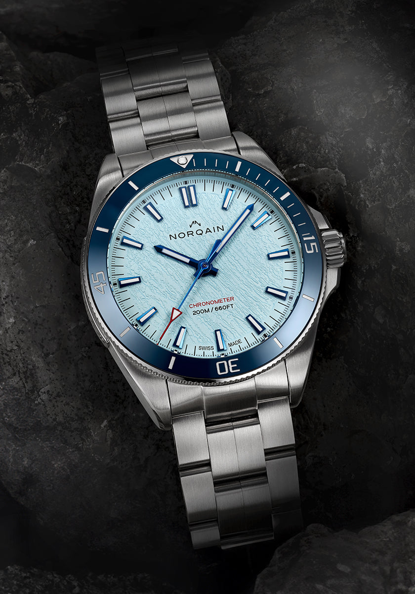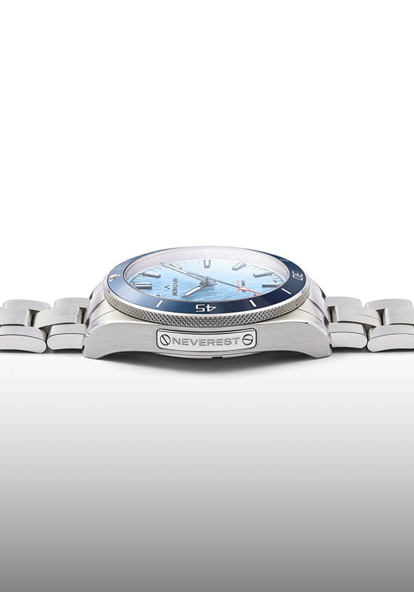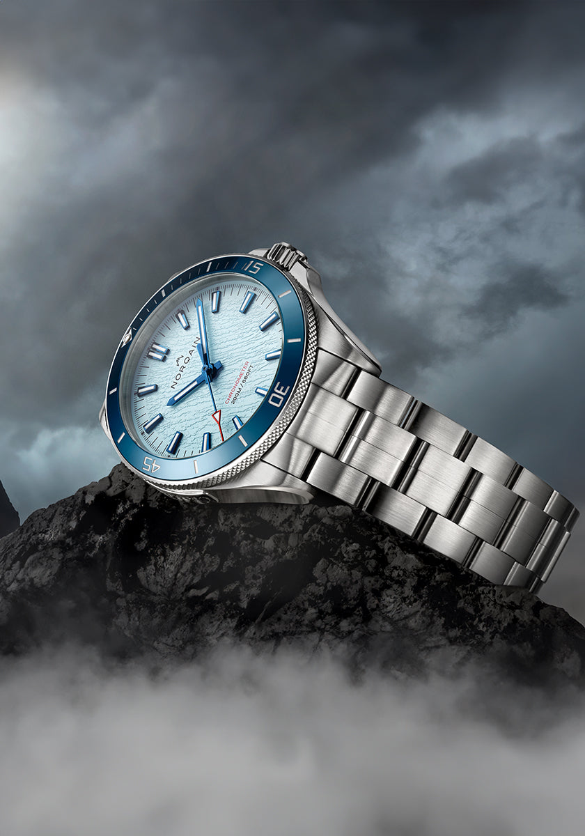 Einzigartiges Zifferblatt mit Gletscherstruktur inspiriert vom Mt. Everest