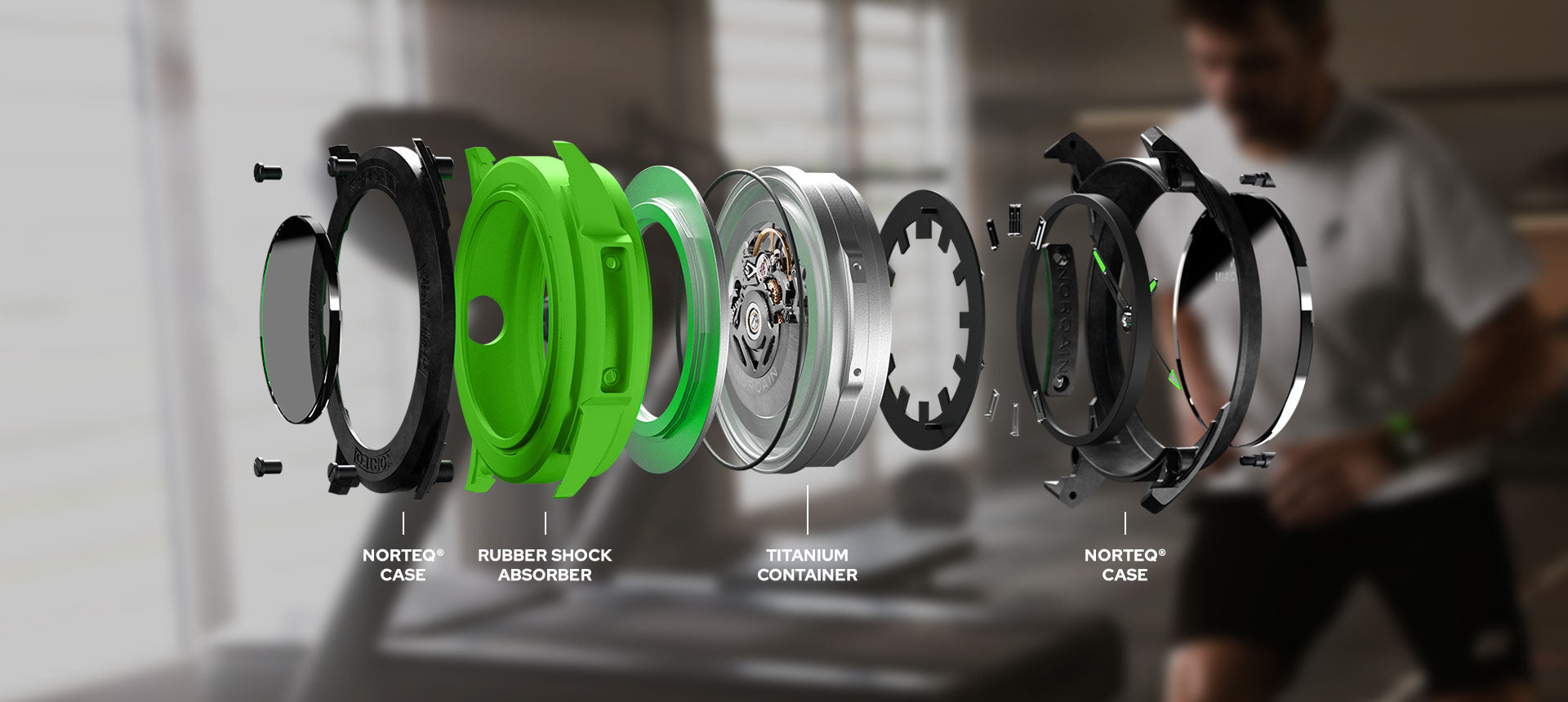 Die Wild ONE aus unserem ultra-robusten und ultra-leichten patentierten NORTEQ® Karbonfasermaterial ist die ultimative Hochleistungssportuhr. Sechsmal leichter als Stahl und 3.5-mal leichter als Titan wurde die Wild ONE in Zusammenarbeit mit Jean-Claude Biver, dem NORQAIN-Team und den besten Schweizer Lieferanten entwickelt.