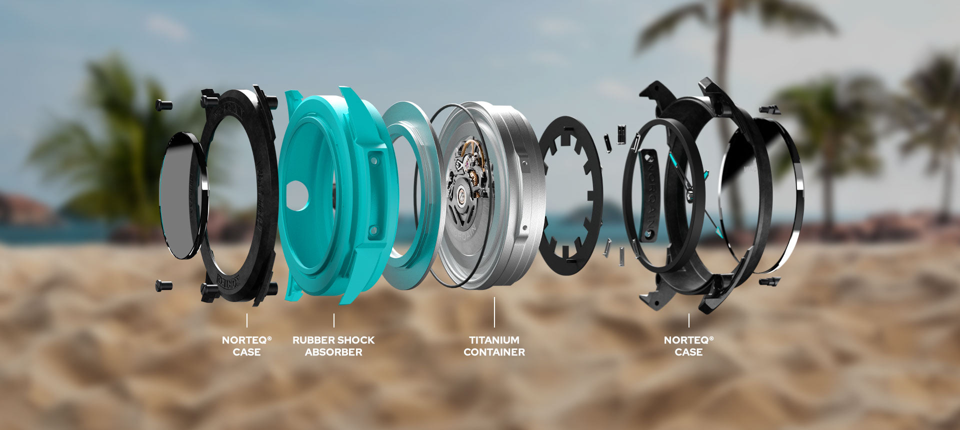 Die Wild ONE aus unserem ultra-robusten und ultra-leichten patentierten NORTEQ® Karbonfasermaterial ist die ultimative Hochleistungssportuhr. Sechsmal leichter als Stahl und 3.5-mal leichter als Titan wurde die Wild ONE in Zusammenarbeit mit Jean-Claude Biver, dem NORQAIN-Team und den besten Schweizer Lieferanten entwickelt.