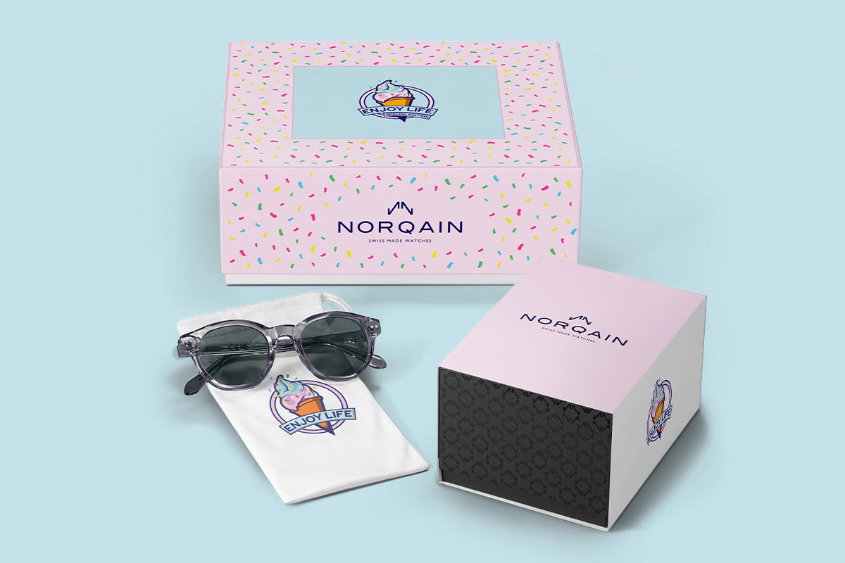Une expérience estivale dès le premier instant. Le coffret édition spéciale est décliné dans des couleurs assorties et comprend une paire de lunettes de soleil NORQAIN, prêtes pour les journées ensoleillées.