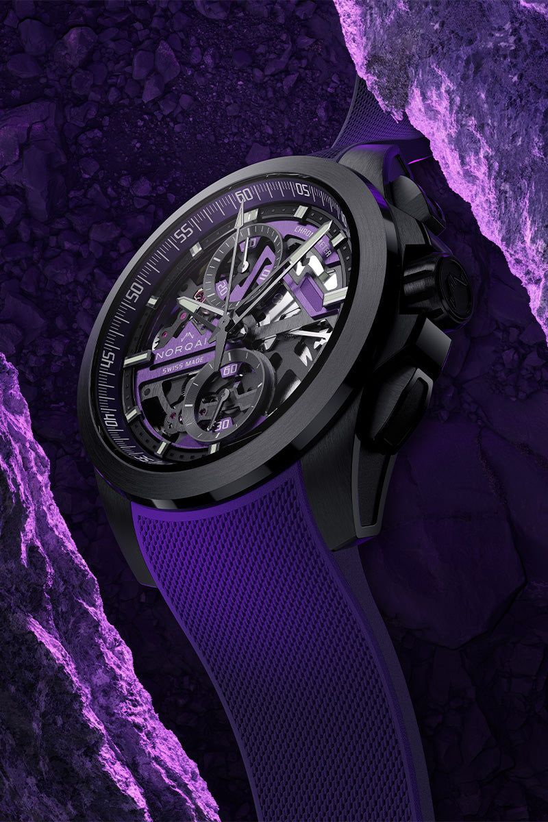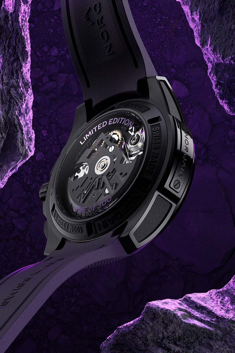 Ce garde-temps exclusif est doté d'un boîtier léger en titane de grade 5. Il s'agit de la première montre NORQAIN dont le boîtier est entièrement en titane. Limitée à 300 exemplaires, cette montre innovante pèse moins de 90 grammes.