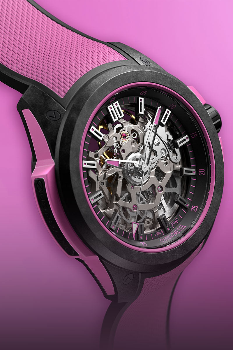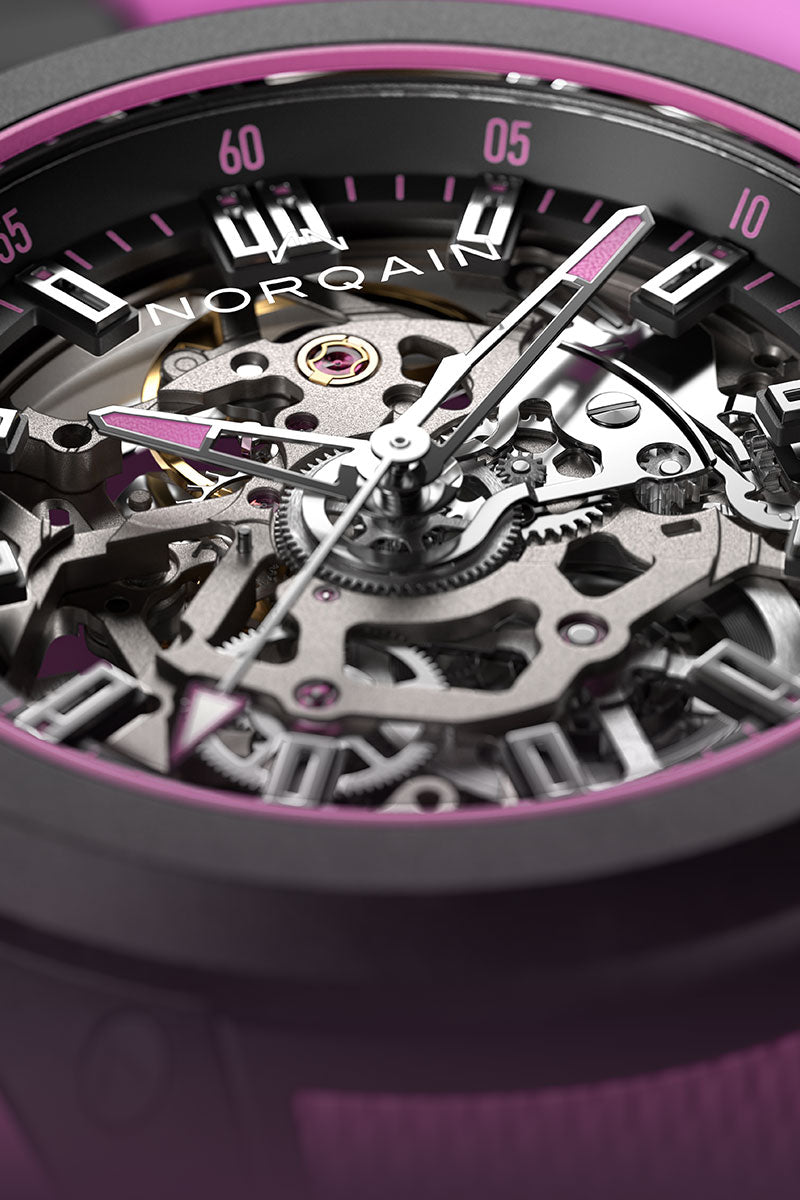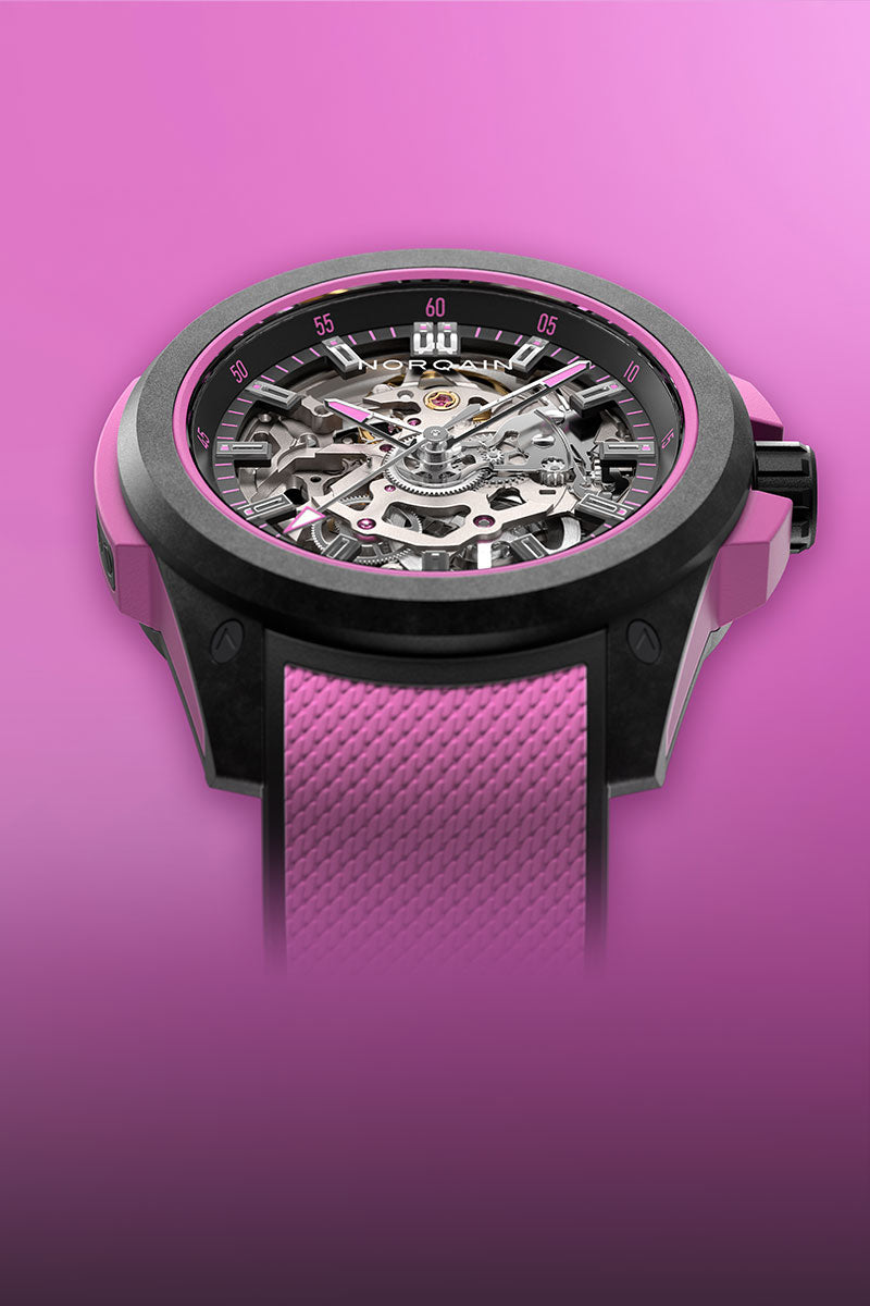 La Wild ONE est la montre de sport par excellence. Elle a été spécialement conçue avec notre matériau exclusif à base de fibre de carbone NORTEQ®, ultra-léger et ultra-résistant. Dotée d’un mouvement mécanique automatique squelette, elle dévoile un savoir-faire minutieux et une précision exceptionnelle au cœur de sa conception.