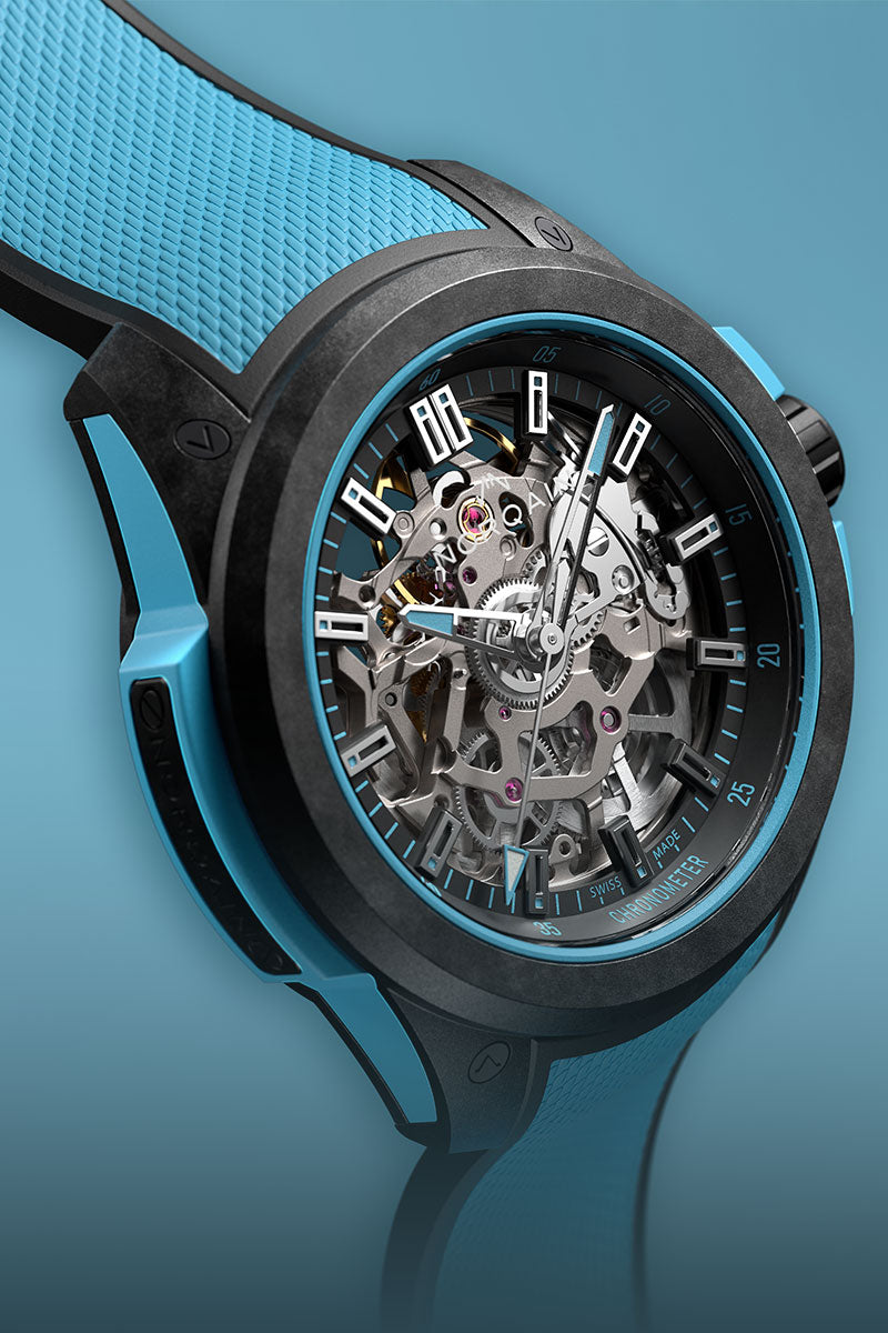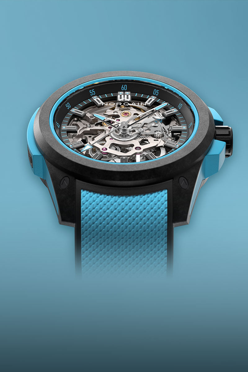 La Wild ONE est la montre de sport par excellence. Elle a été spécialement conçue avec notre matériau exclusif à base de fibre de carbone NORTEQ®, ultra-léger et ultra-résistant. Dotée d’un mouvement mécanique automatique squelette, elle dévoile un savoir-faire minutieux et une précision exceptionnelle au cœur de sa conception.