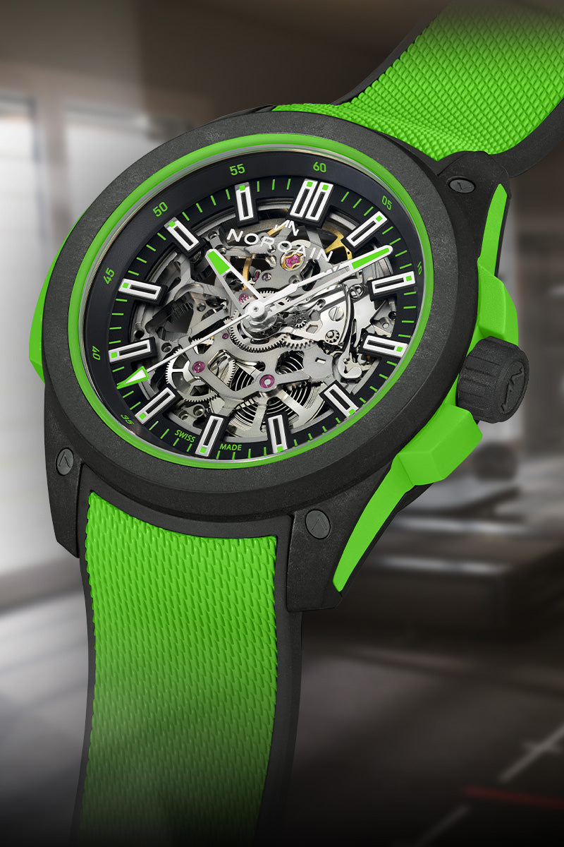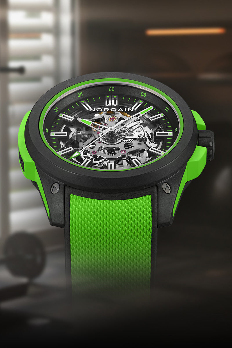 La NORQAIN Independence Wild ONE est la montre de sport par excellence. Elle a été spécialement conçue avec notre matériau exclusif à base de fibre de carbone NORTEQ®, ultra-léger et ultra-résistant. Six fois plus léger que l'acier et 3.5 fois que le titane, cette Wild ONE a été imaginée en collaboration avec Jean-Claude Biver, l'équipe NORQAIN et les meilleurs fournisseurs suisses.