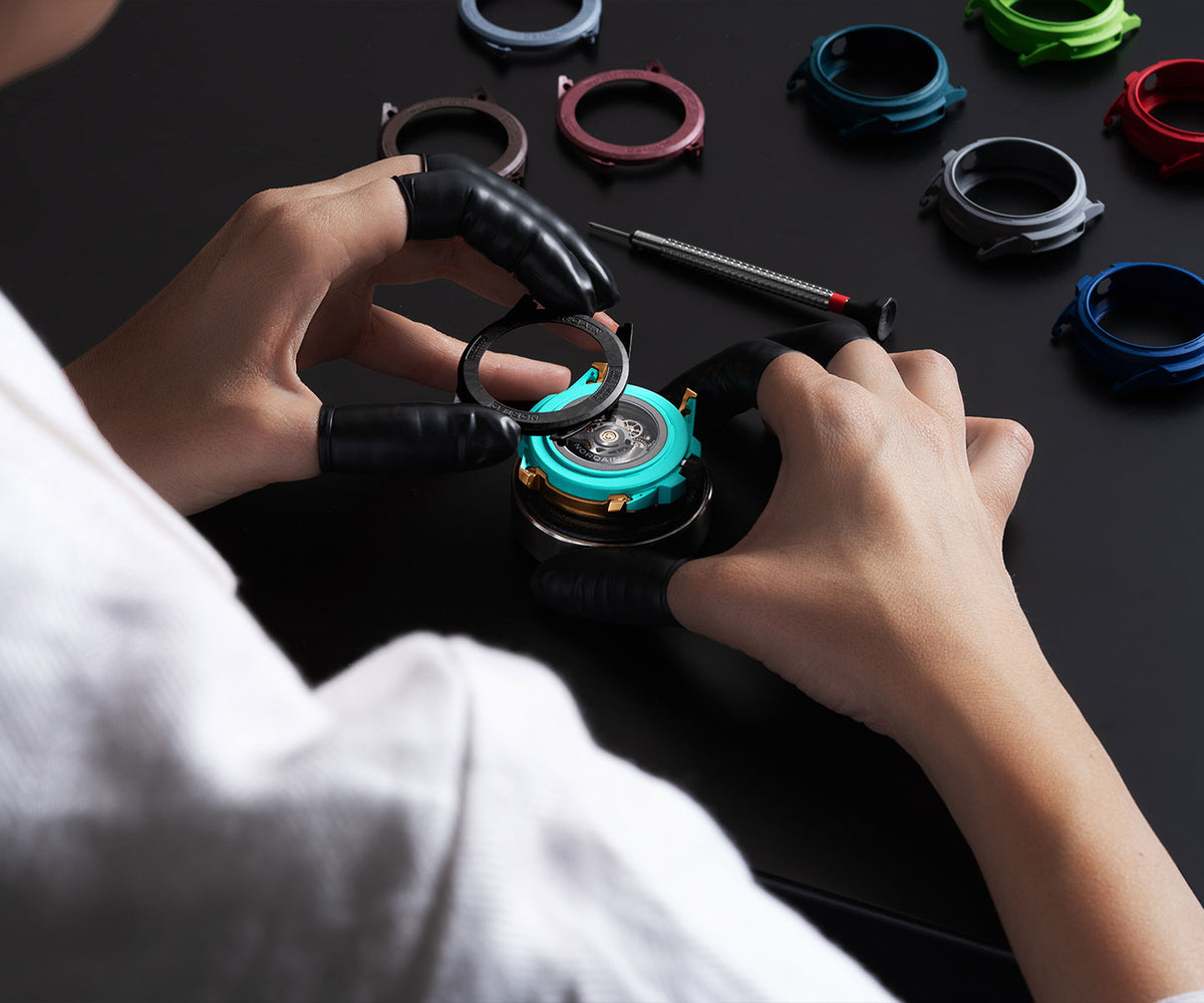 Un esempio perfetto è la collezione Wild ONE, lanciata nel 2022, che rappresenta l'apice degli orologi sportivi ad alte prestazioni. Questa collezione vanta una cassa ammortizzante realizzata con il nostro esclusivo materiale NORTEQ®. Questo polimero di fibra di carbonio non è solo sei volte più leggero dell'acciaio, ma anche 3,5 volte più leggero del titanio, offrendo una durata superiore e un comfort leggero per chi ha uno stile di vita attivo.
