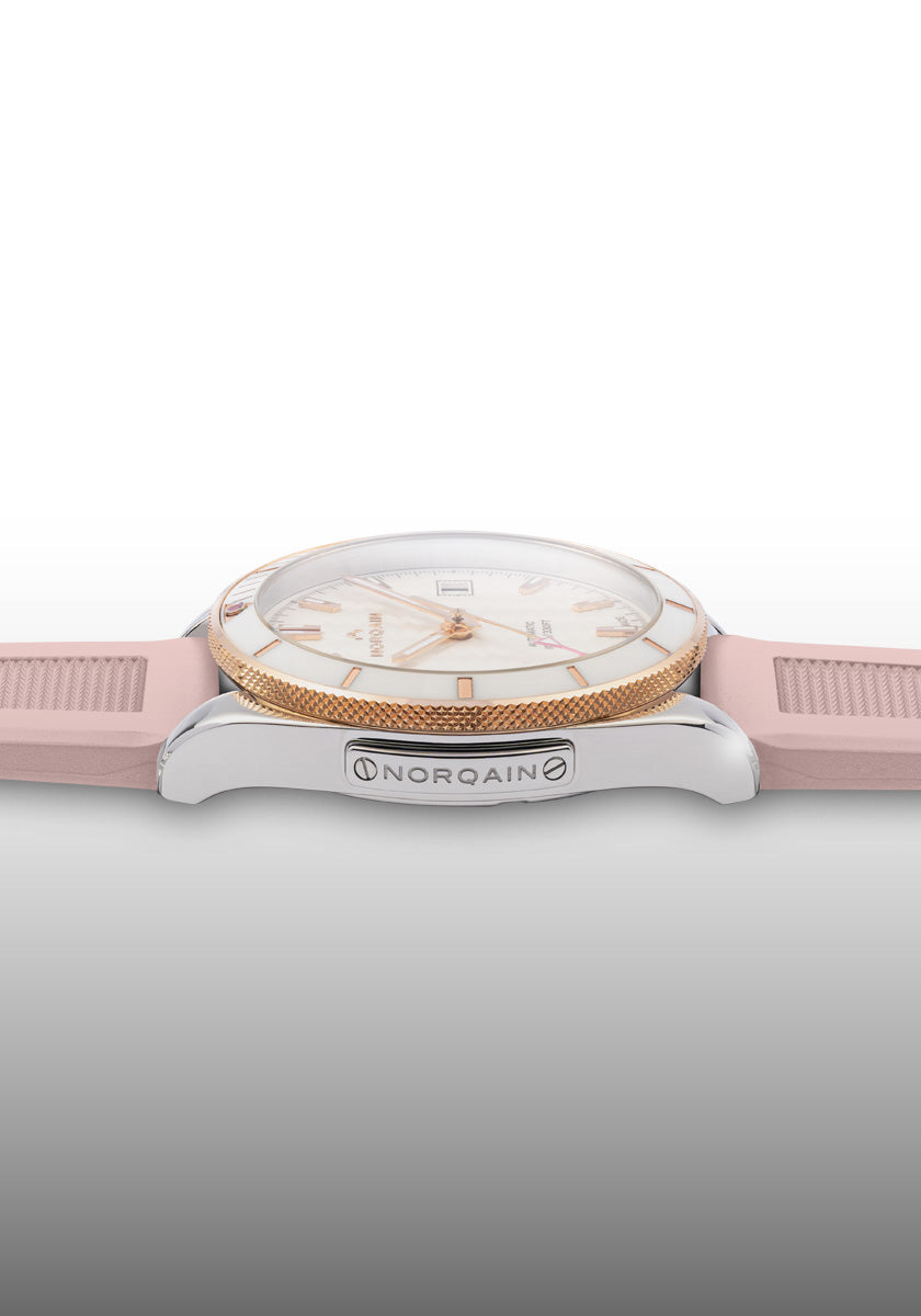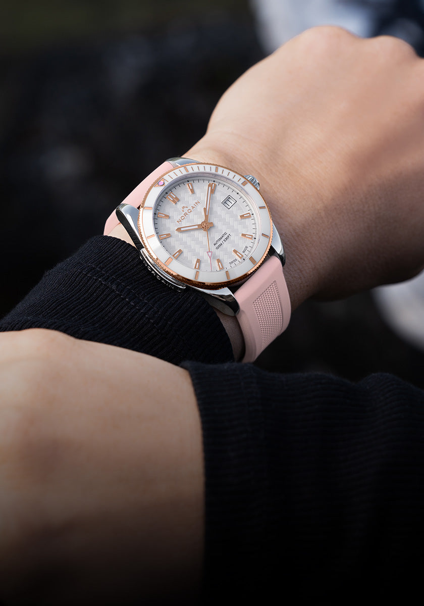 La linea Adventure incarna l'emozione di esplorare e conquistare la natura: i sentieri, le vette ed il mare. L'esclusivo motivo NORQAIN si ispira alle montagne svizzere.