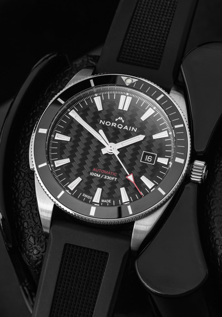 La linea Adventure incarna l'emozione di esplorare e conquistare la natura: i sentieri, le vette ed il mare. L'esclusivo motivo NORQAIN si ispira alle montagne svizzere.