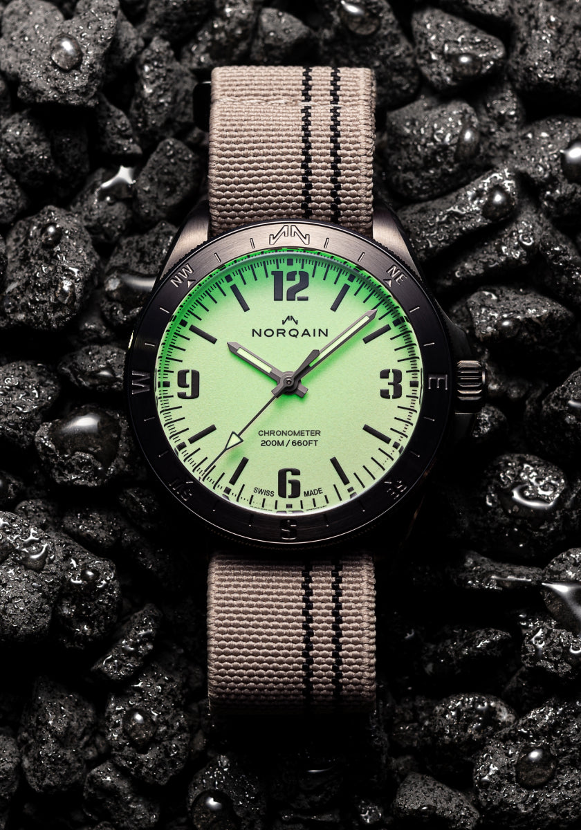 NEVEREST – Il nome dice tutto. Questa collezione rappresenta l’ambizione e lo spirito instancabile di NORQAIN. Il 10% dei proventi delle vendite degli orologi NEVEREST viene devoluto al Butterfly Help Project in Nepal per aiutare le famiglie di sherpa che hanno perso la vita sulle montagne himalayane e dare ai loro figli l'accesso all'istruzione.