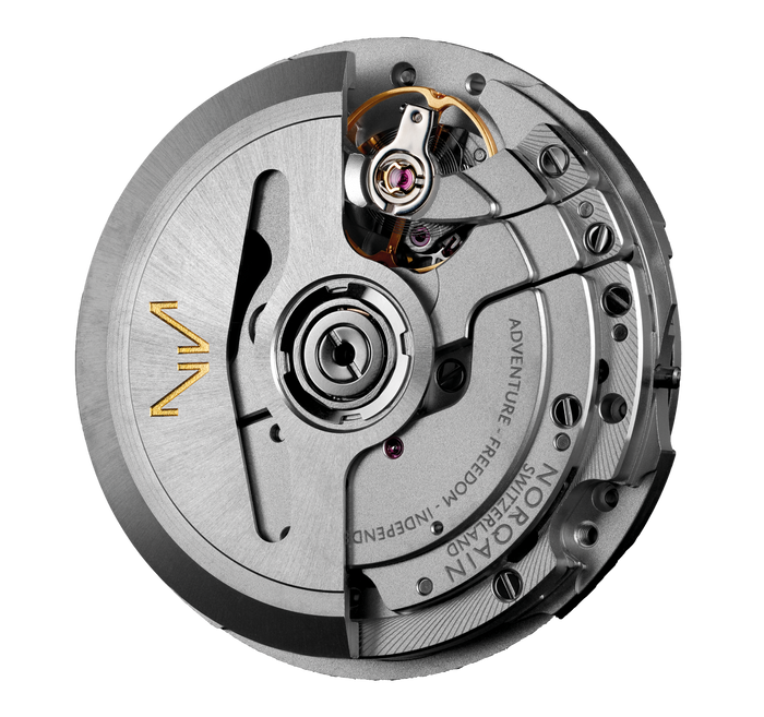 「NORQAIN 8K」 マニュファクチュール・キャリバーは、世界最高峰の山々への限りない愛と、時計メカニズムの革新に対する揺るぎないブランド姿勢を表現しています。フライバック機能を備えたクロノグラフは、ボタンをワンプッシュするだけでリセットとリスタートが可能です。複雑なメカニズムをもつフライバック・クロノグラフは、約1世紀前にパイロットの装備品として開発され、今日では、速いペースで反復トレーニングを行うスポーツなどの分野で使用されます。
