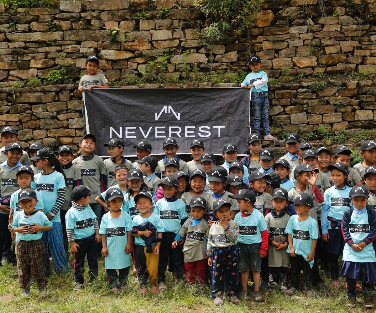 私たちはバタフライ・ヘルプ・プロジェクトへの支援に大きな誇りを持っています。この団体は、Wild Yak Expeditions<ワイルド ヤック エクスペディション>のノーブ・シェルパとアンドレア・シェルパ-ツィメルマンによって設立され、ヒマラヤ山脈で命を落としたシェルパ(案内人)の家族に援助をし、彼らの子供たちが教育を受けられるようにすることを目的としています。私たちのコミットメントの証として、NEVERESTの売上の10%はこの基金に寄付されます。