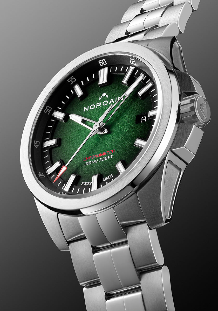 スクラッチ仕上げのグリーングラデーションダイヤル