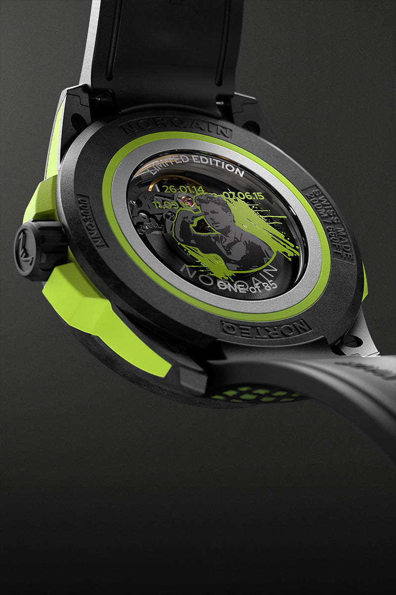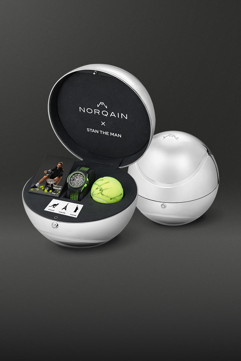 3度のグランドスラム優勝を誇るスタン・ワウリンカ選手とのコラボレーションにより誕生した本モデルは、彼の卓越したキャリアとテニス界に刻まれた不朽のレガシーに捧げる特別なタイムピースです。オンコートでもオフコートでも魅せる彼のスピリットとスタイルを映し出し、真のチャンピオンの本質を体現しています。ケースには、NORQAINが独自に開発した超軽量・超耐久のNORTEQ®を採用。過酷なスポーツシーンにも耐えうるパフォーマンスと、洗練されたスケルトンデザインが融合した、究極のハイパフォーマンス・スポーツウォッチです。世界限定85本。この数字は、スタン・ワウリンカの生年である1985年へのオマージュで、挑戦を恐れない精神、確固たる個性、そして卓越性への飽くなき追求を称える、勝利を重ねてきたスタン・ワウリンカの軌跡と魂を象徴するモデルです。