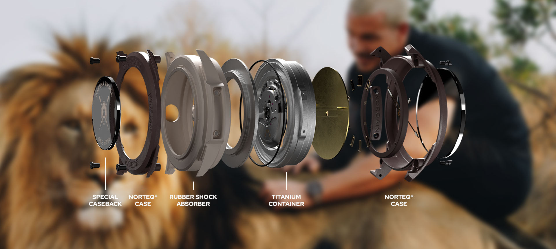 This timepiece celebrates our partnership with wildlife ambassador and NORQAINER Dean Schneider and is the ultimate choice for sports-enthusiast NORQAINERS who feel passionate about protecting wildlife and supporting the important work being done at Hakuna Mipaka. 10% of earnings from the sales of this watch are contributed to the to the animal sanctuary. This model is limited to 300 pieces.
